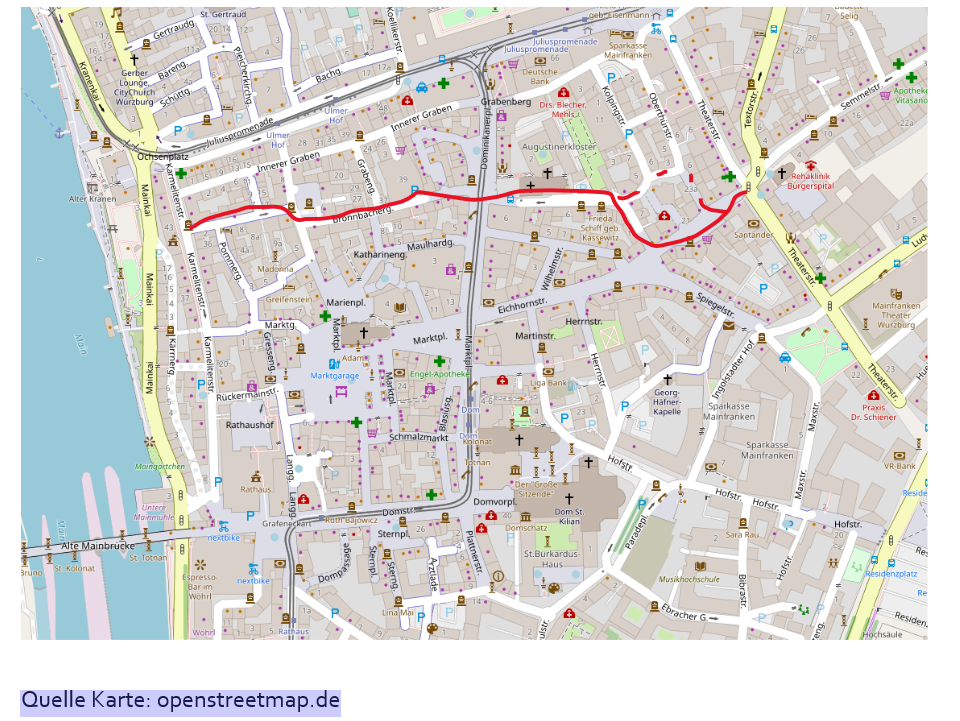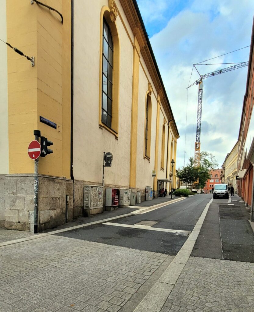 Hiermit beantragen wir, auch namens der Stadtratsfraktion von BÜNDNIS 90/DIE GRÜNEN, die Einrichtung und Ausweisung einer Radverkehrsverbindung entlang der Achse Eichhornstraße – Dominikanergasse – Bronnbachergasse.